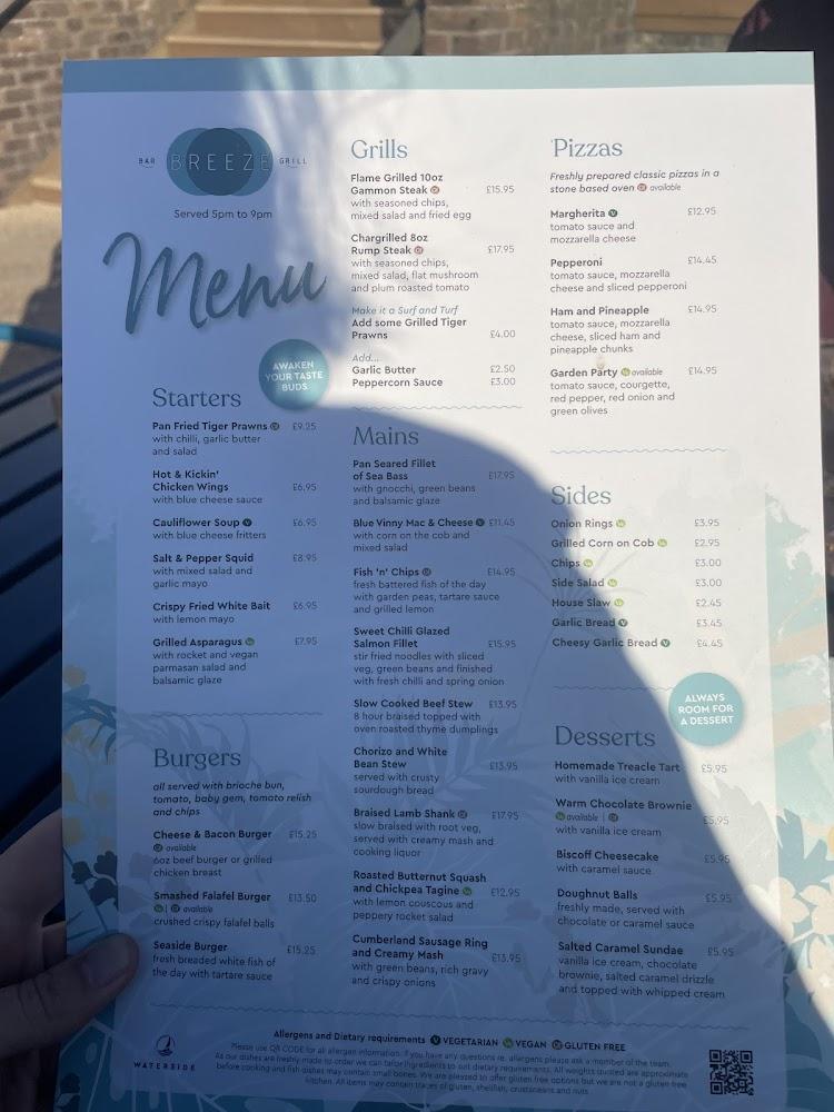 Situated at Chesil Vista, Portland Rd, Weymouth DT4 9AG, United Kingdom, Breeze Bar & Grill is the go-to dining locale for visitors and locals alike. The grandeur of the 5-star Chesil Vista Holiday Park surrounds this delightful eatery, which takes dining to a new level with its breathtaking views over Chesil Beach. The warm, welcoming atmosphere invites families, groups, and tourists to unwind while savoring delicious dishes. Thanks to outdoor seating options, patrons can take full advantage of sunny days, making it an ideal place for al fresco dining. The restaurant also provides ample amenities, ensuring a comfortable experience for all. With a children's menu and a good selection of vegetarian options, they cater to both young diners and various dietary preferences. The location buzzes with energy, particularly during peak times, giving it a vibrant community feel that enhances the overall dining experience. With a mix of local charm and high standards, Breeze Bar & Grill stands as a culinary highlight on the Jurassic Coast.